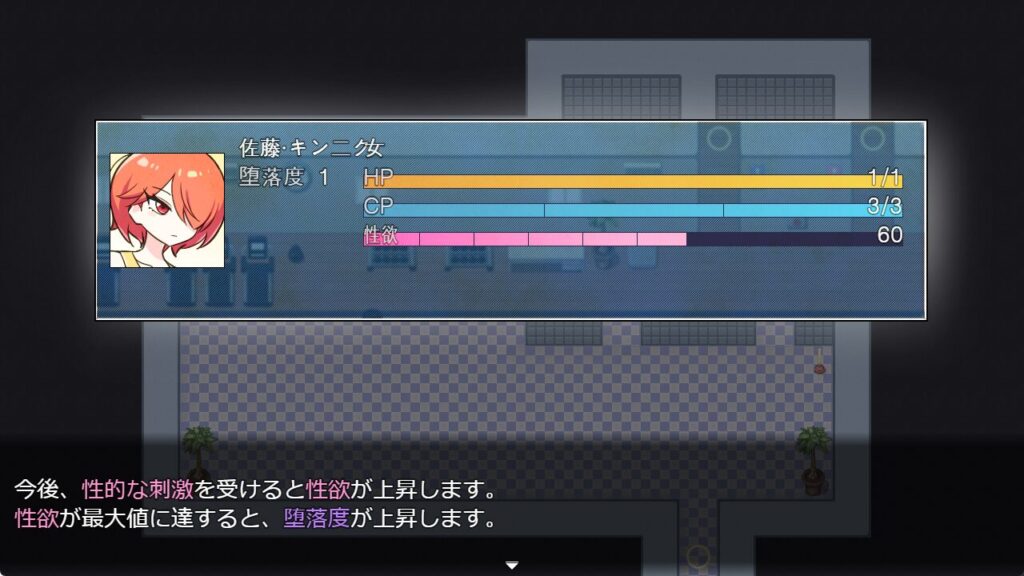 性欲が一定以上になると堕落度がアップして一部エロイベ解禁。